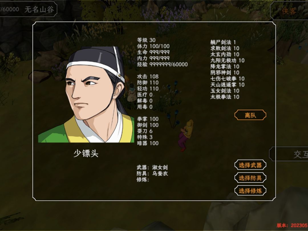 6、所有武学满级为10