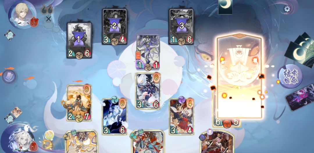 一回合:鬼使黑三张牌,二回合:烟烟罗形态、贪食鬼、爆能暴躁鬼;三回合:日和坊形态、烟烟罗爆能、出击;四回合:烟烟罗爆能、御馔津破魔符、鬼使黑索命