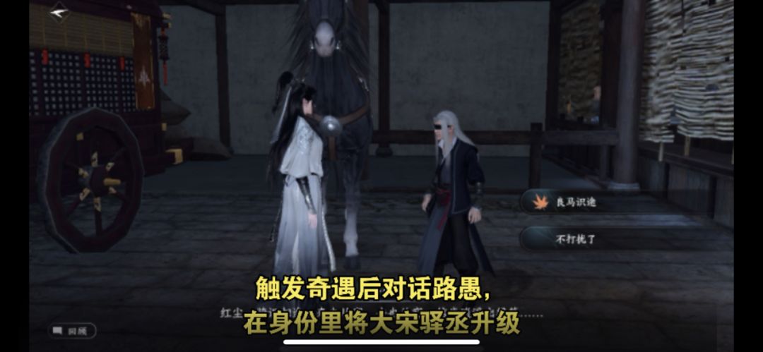 推荐两个奇遇触发地:汴京虹桥(1017.1024)、汴京南门(1012.1367)在附近来回转悠-触发奇遇后对话路愚,在身份里将大宋驿丞升级-解锁身份后,点开地图指南-完成条件一的主线剧情和条件二的100熟识度-就能使用自动寻路,但每张地图都要从头刷熟识度