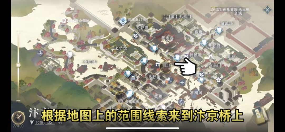 根据地图上出现的范围线索来到汴京虹桥上-靠着NPC骑行,找一位欣赏马的NPC对话:问他盲眼老者在哪(最好与NPC苏清寒对话,其它人会闹乌龙)