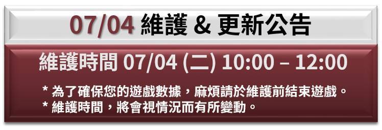 - 販賣期間:07/04 維護後 - 07/18 維護前