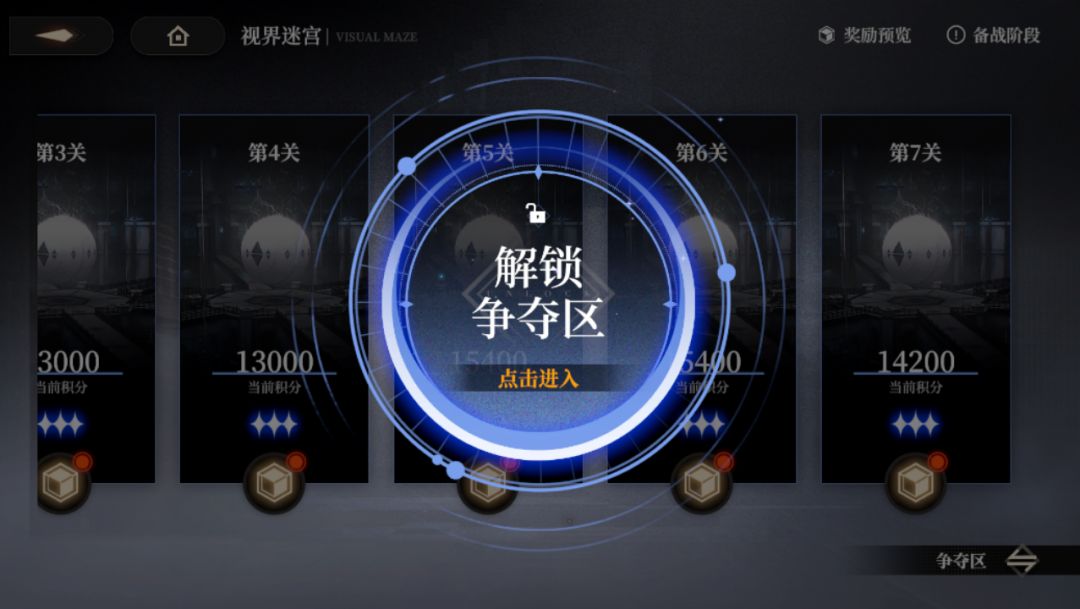 (1) 通关2-4解锁【视界迷宫】玩法,玩法分为备战区和争夺区。