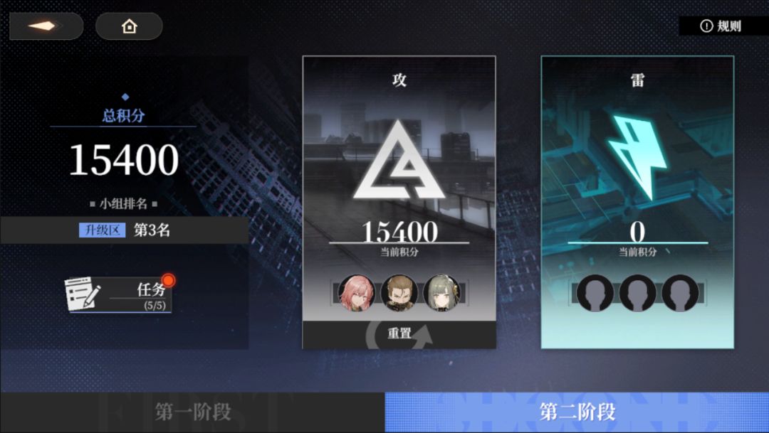 (4) 每一阶段分为两个关卡,选择不同小队出战(不同小队不可使用相同角色),场景内会提供不同的增益BUFF,在相同时间内击败怪物越多,积分越高