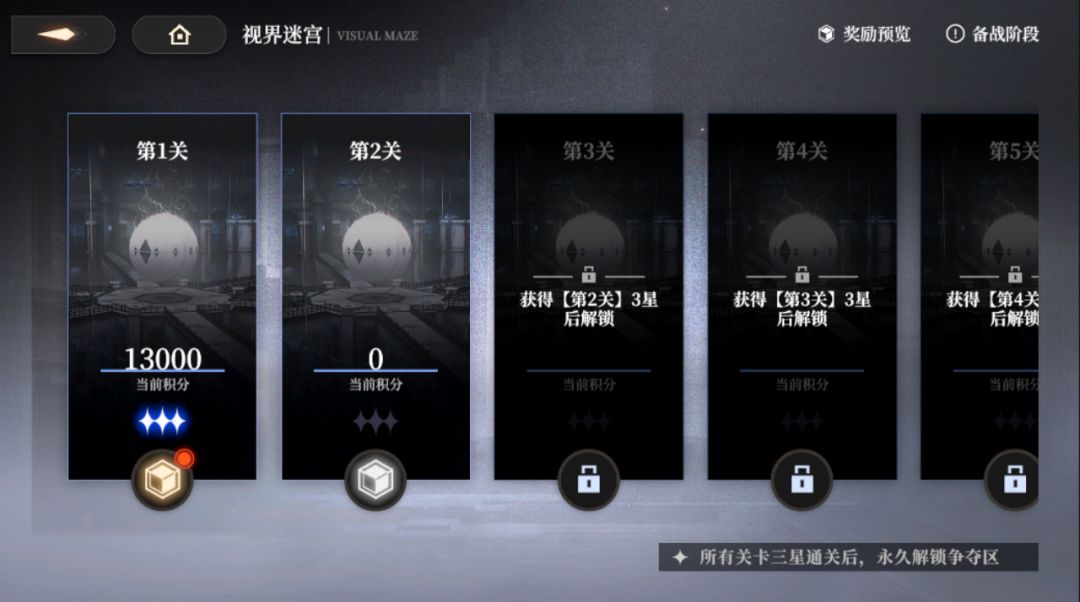 (2) 【备战区】在所有关卡3星通关后,可解锁【争夺区】
