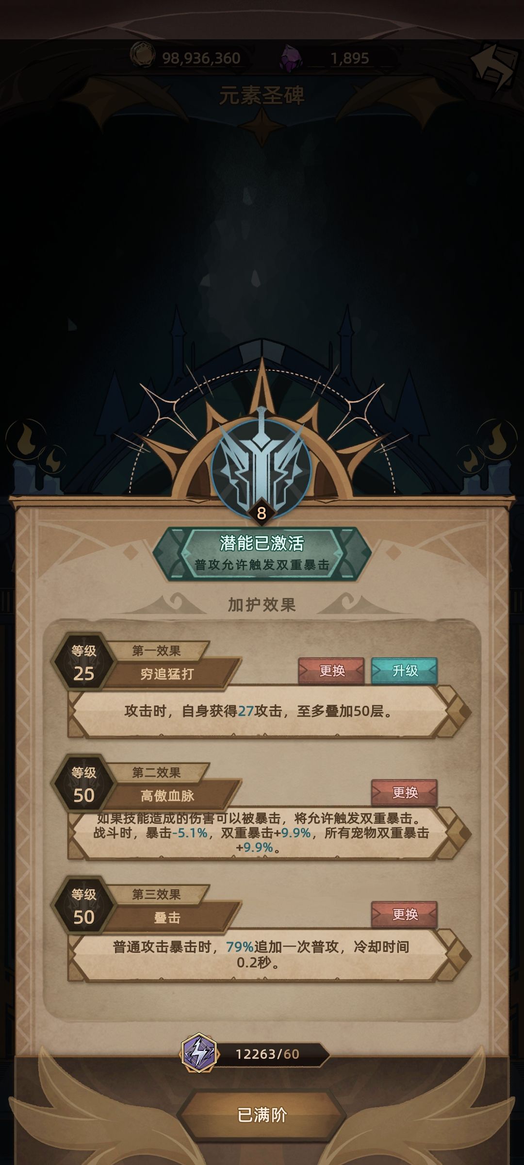 触发频率方面:暴击塔的满级<叠击>可以在普攻暴击时,79%几率追加一次普攻,冷却时间0.2秒肯定低于攻击间隔,相当于没有;武器用【魔族短刀】,特效攻击的同时对自己造成伤害,触发受击效果;这俩效果组合起来:一次攻击,两次普攻,两次攻击效果,两次受击效果,四次<碎盾裂击>,非常恐怖。