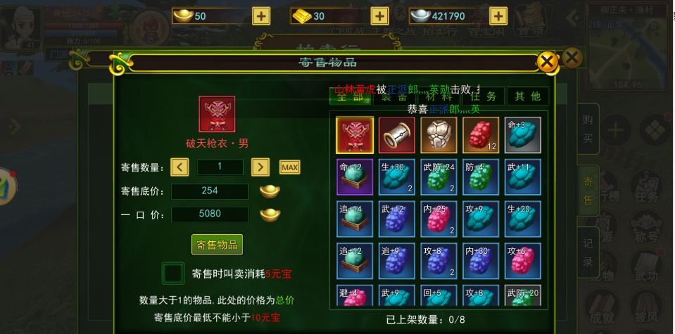 6,装备获取与强化装备分为五个级别:白、蓝、紫、橙、红。级别越高的装备,属性以及评分就越高,除了装备外,就是装备的强化了,强化等级越高,属性评分加成也越高,强化到5以上,会有装备破碎的风险。