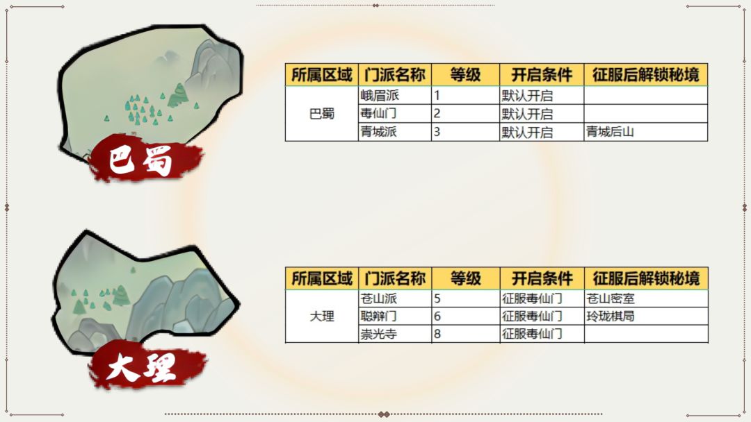 那么闯荡江湖怎么能没有一份闯关指南呢?这不小师弟双手奉上各门派开启征服条件,助力掌门一统江湖🚩🚩