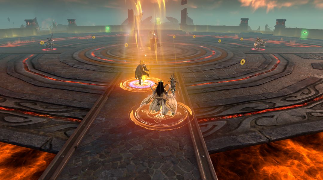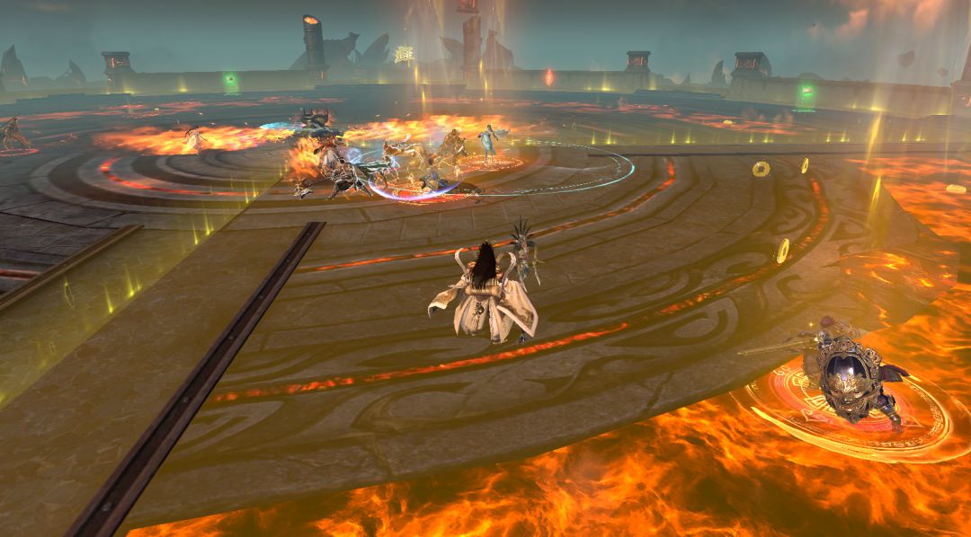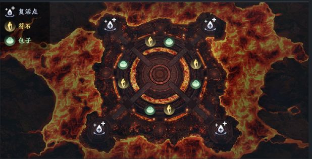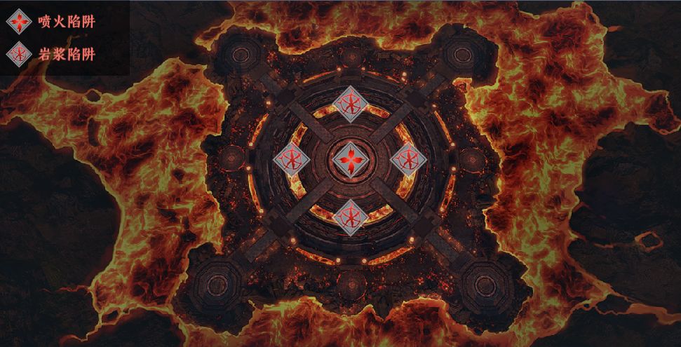 这些遍布战场的炽热岩浆并非装饰而已,在战斗中如果不小心坠入其中,就会损失大量生命值。而战场中间还会刷新出喷吐火焰的旋转机关,触碰到这些火焰也同样会损失生命值。