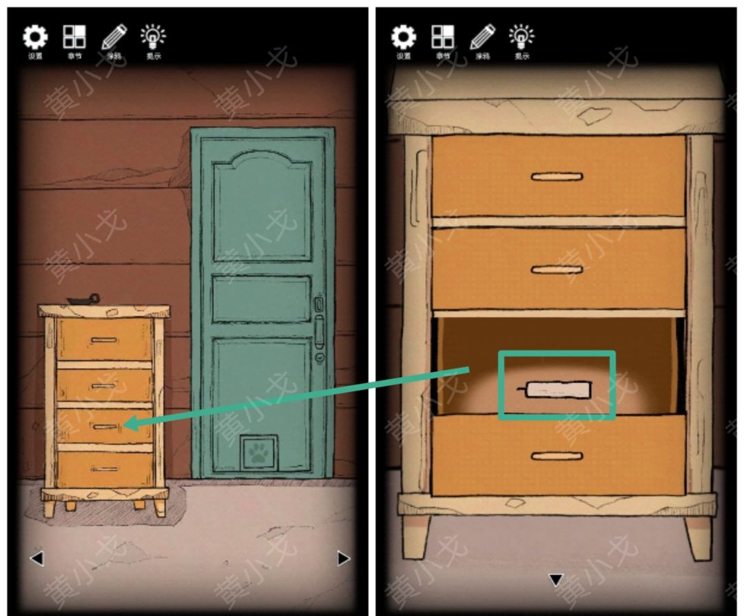 22.用【钥匙B】打开柜子的第二个抽屉,获得【旋钮】