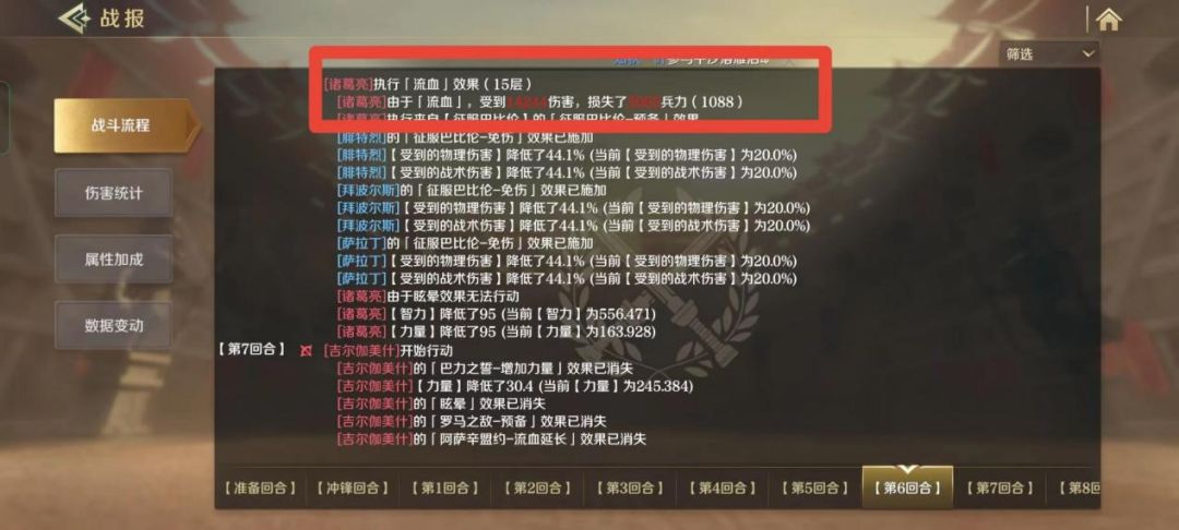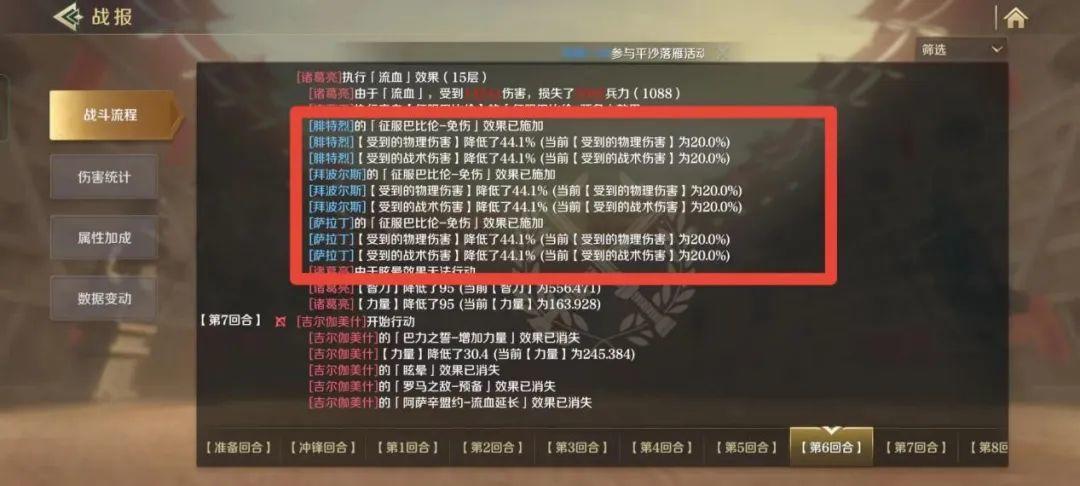 通过结算流血效果,触发减伤效果,让800多点力量的【三皇会战】也无法打出高额伤害。