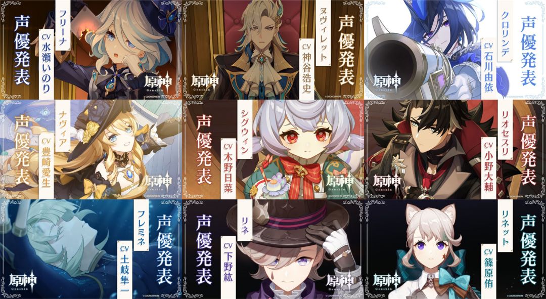 最后值得一提的是,这次的枫丹新角色CV阵容相当豪华,尤其是日配基本上都是知名人气声优,甚至是不少人的青春:比如水濑祈、石川由依、丰崎爱生、小野大辅、神谷浩史等等。这下更加不得不抽了~