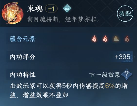 比如说内功【束魂】的特性为:击败玩家后,在一段时间内可以获得伤害提高的增益。若您是PVE玩家,这个特性可能就没什么用,在不影响周天效果的情况下可以考虑换成别的。