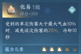 以内功[化易]举例,该内功默认拥有三个土元素,当内功升级到10级时将获得一个土元素,升至20级时将从五行中随机获得一个元素。