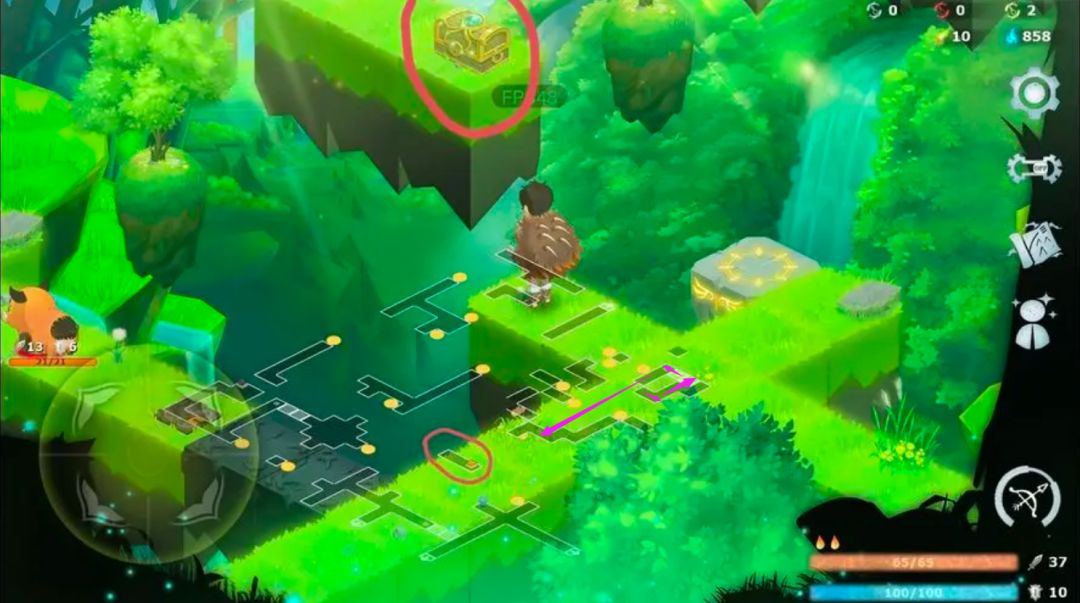 这个宝箱要从途中标记的粉色的线路过去。就可以探索这片区域了