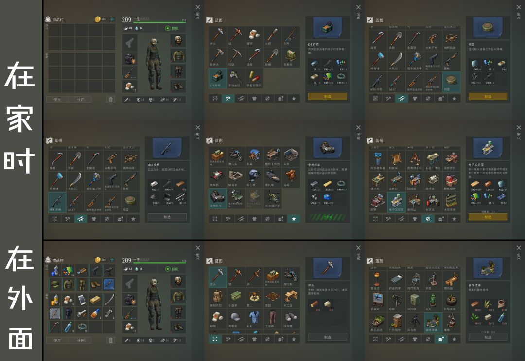 现在我们在家时,不必手上拿着物品才能制作,只需要家里的箱子里有对应物品就能完成制作,在外面是不能使用的哦(别想着空手搓菜刀)