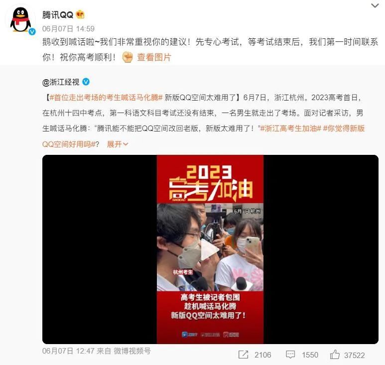 编者按:上个月高考季,在浙江杭州一考点,首位走出考场的学生,面对采访镜头喊话腾讯:“能不能把QQ空间改回老版?新版太难用了。”这事一时引起了网友热议,QQ官方都下场回应了。