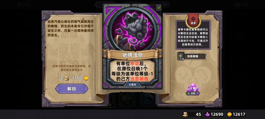 弛聘浊息——有单位移动,就能在原位召唤一个等级为该单位等级-1的浊息。