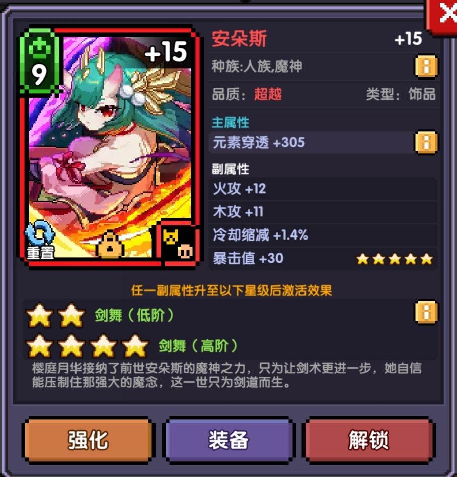 必备饰品卡,主属性推荐元素穿透,星级词条提供的伤害增幅是无删减算法,适用于任意场合,目前完全不用担心被淘汰。