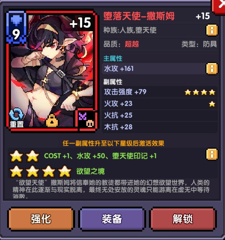 ⭐⭐:cost+1,水攻+50,堕天使印记+1
