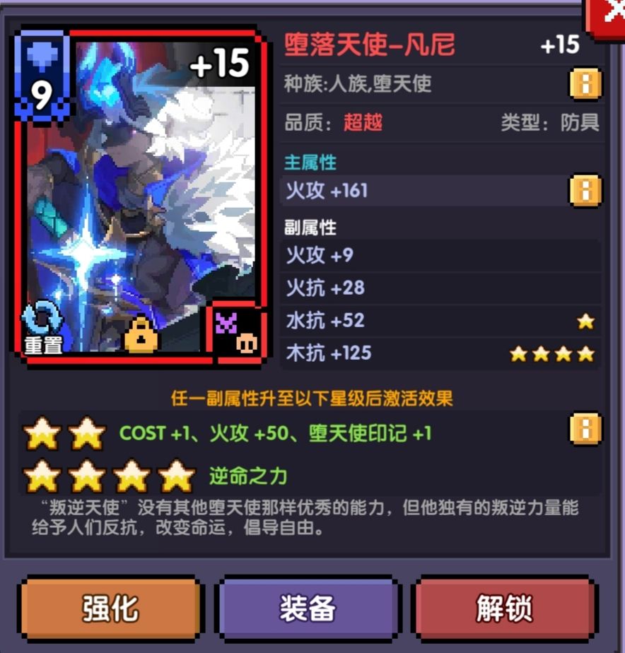 ⭐⭐:cost点+1,火攻+50,堕天使印记+1