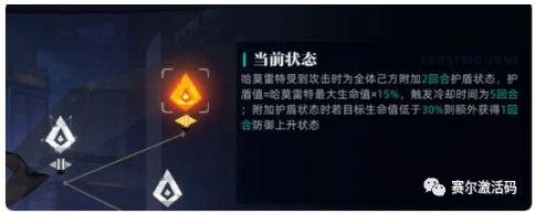 第二种是防守端,目的是让自己精灵的血量极限提高,这样在后续回合里,敌方的血量被我方精灵消耗殆尽,这个时候如果在搭配可以加血量的精灵,敌方就会被带上痛苦面具,在防守端里,哈莫雷特大招嘲讽敌人+被动可以给全体队友加盾,这两个机制搭配起来只能说无解。