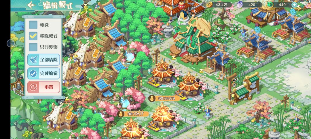 好不容易布置好了,这个游戏在建筑布置摆放功能上还算凑合,很多建筑虽然免费,但有上限比较难受,没有蓝图之类的临时保存功能,想大改一番颇为耗时耗力,需要不停的完成布置退出建筑布局,稍有不慎就功亏一篑,颇令人不爽。装饰类小建筑类型还是太少了,好看些的还要钻石买,哪里舍得买啊。
