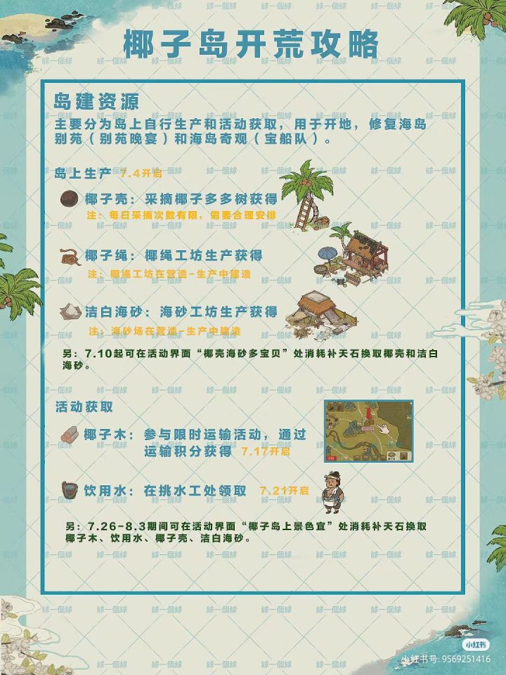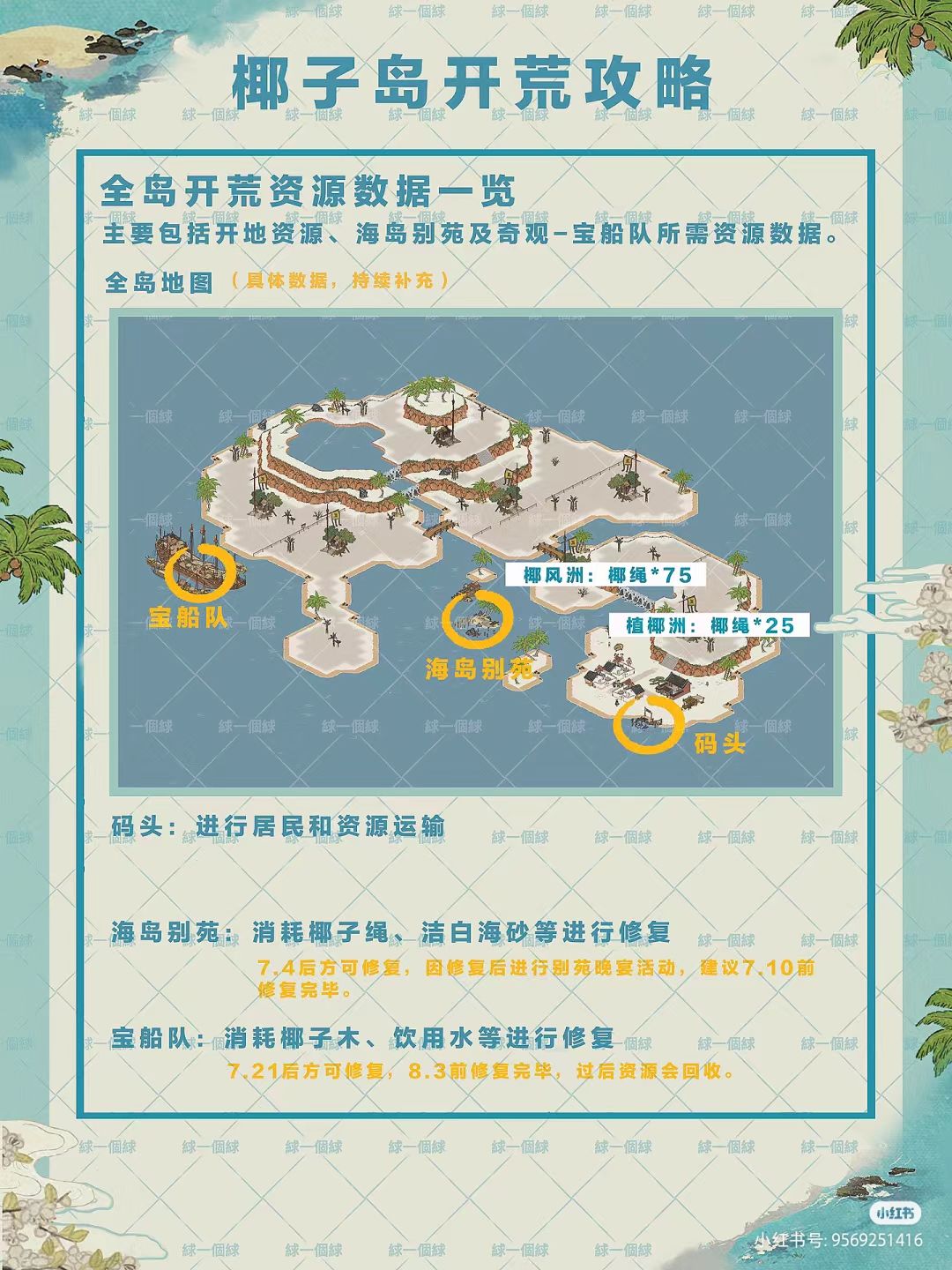 主要包括岛上自行生产获取和活动获取,用于开地、修复海岛别苑、修复奇观宝船队