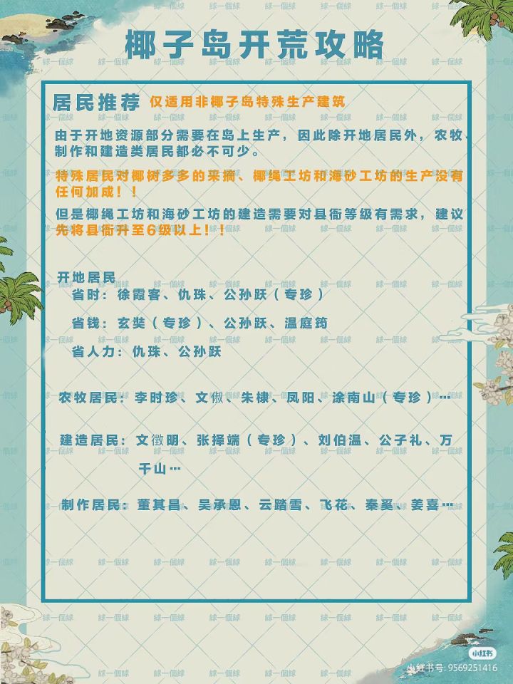 特殊居民椰子树采摘,椰绳生产,海砂生产没有加成作用,仅对非椰子岛独有生产有效