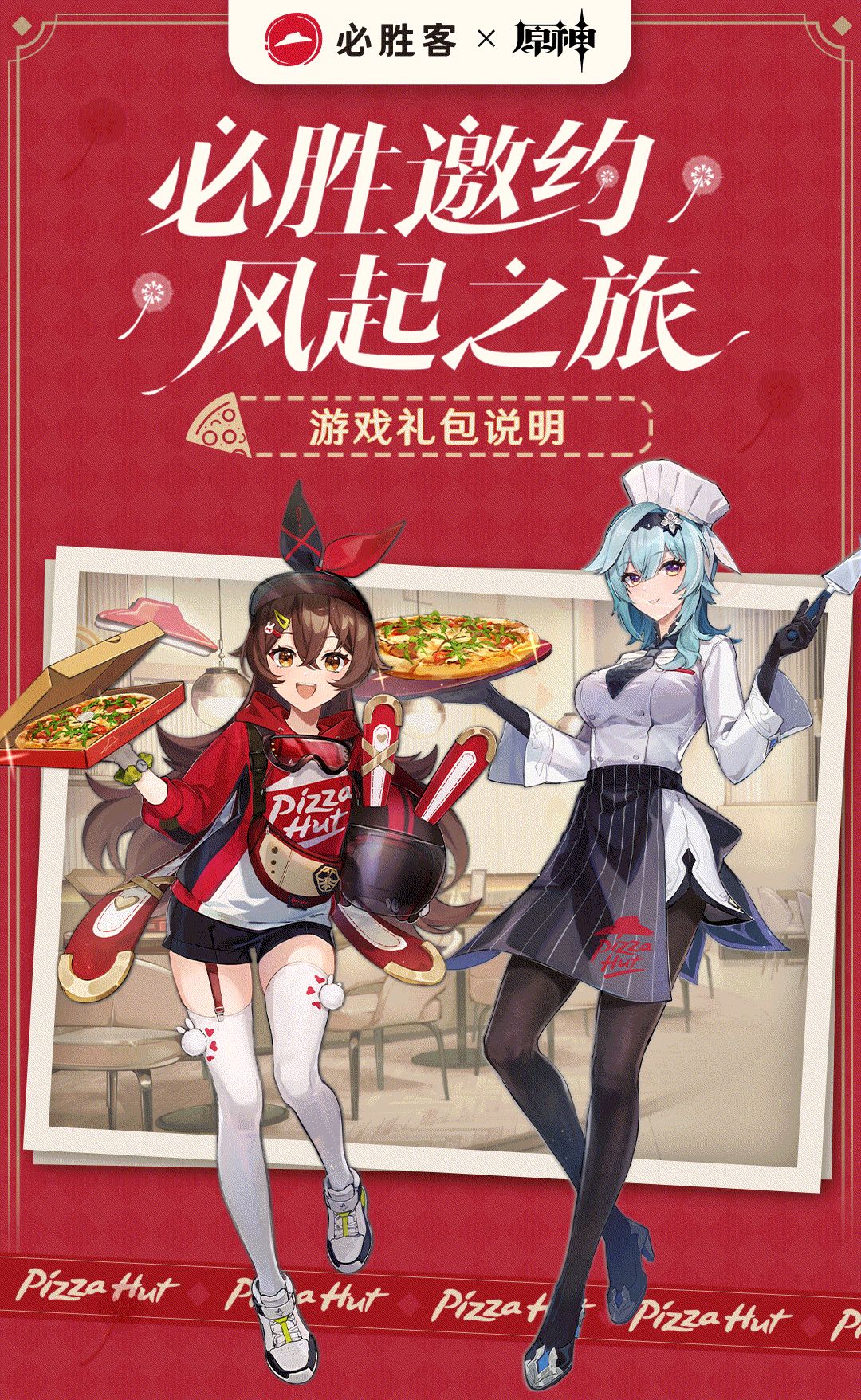 必胜客可是与《原神》联动的老角色了,二者早在2022.8.29就有了第一次联动,当时的主题是“风起之旅”,相信不少小伙伴都顺利地在那次活动中见到了自己喜欢的安柏和优菈了吧!