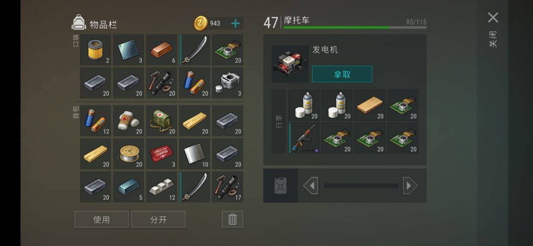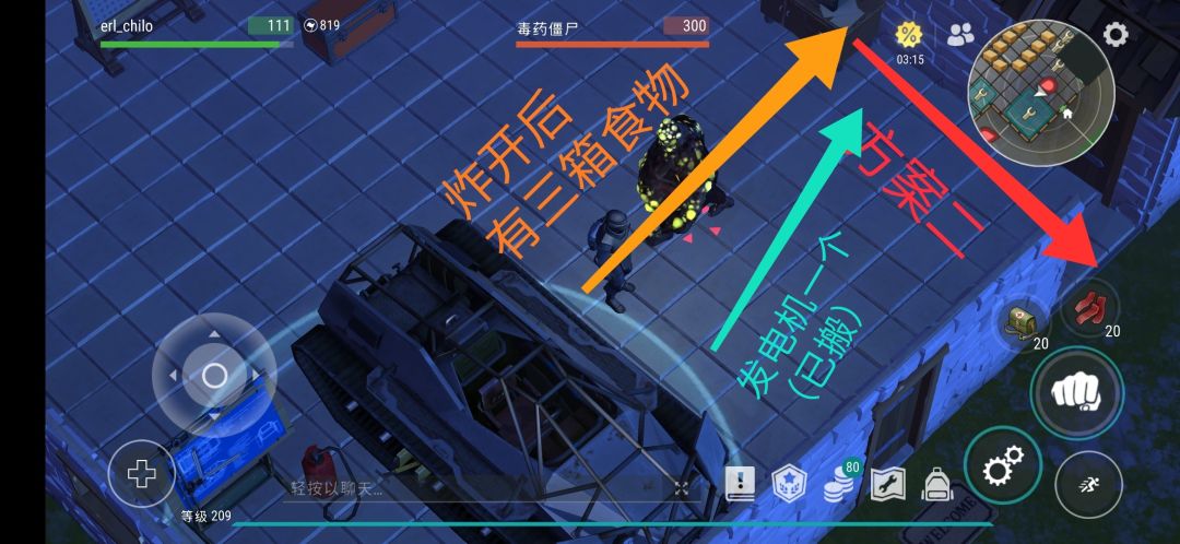 右角落房间内应该有三箱食物,实在懒没拿,周围还有一个已组装发电机。