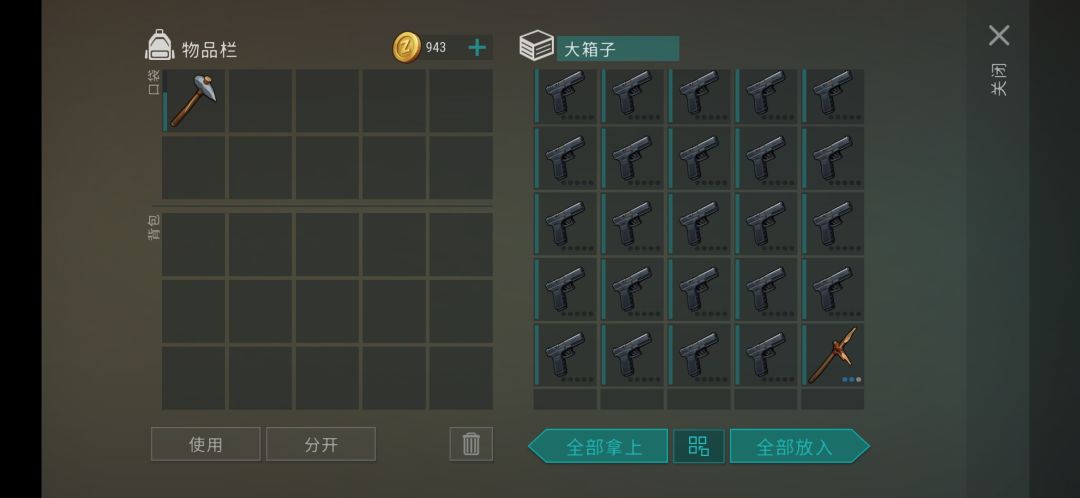 3:vss一把,手枪四把,武士刀五把,水管四把,大锤两把,大砍刀两把。