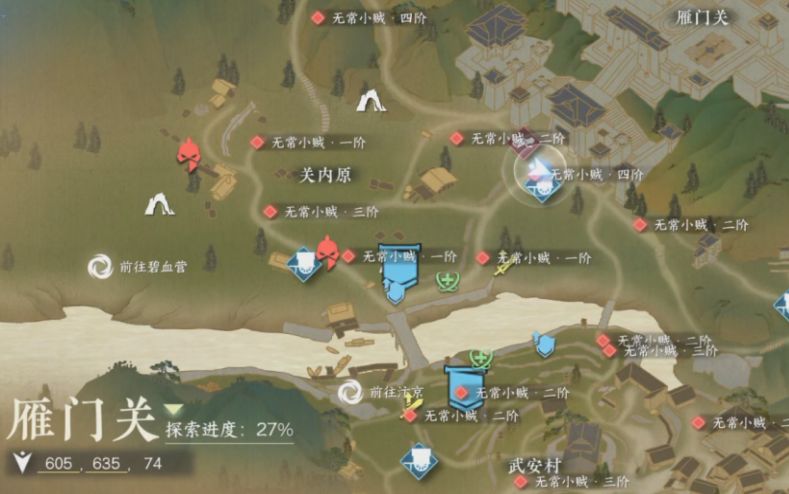 首先是看准时间段,提前来到雁门关,盗贼出现前屏幕上会有时间的提示。