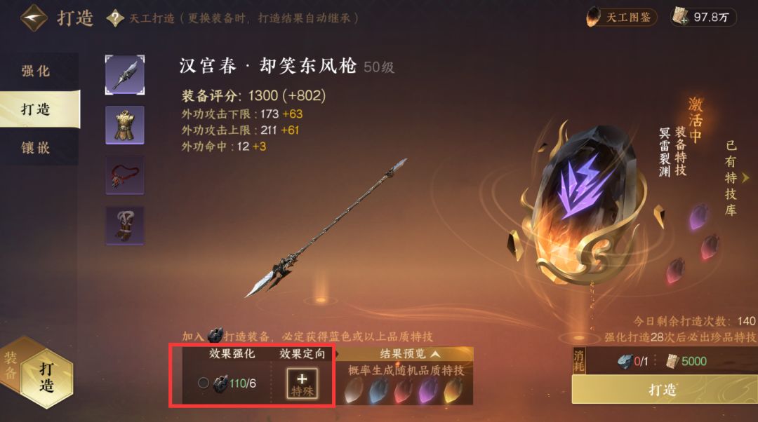 今天打造除了每日副本掉落的效果定向材料,可以打造一下武器以外,别的没有开通新的内容!