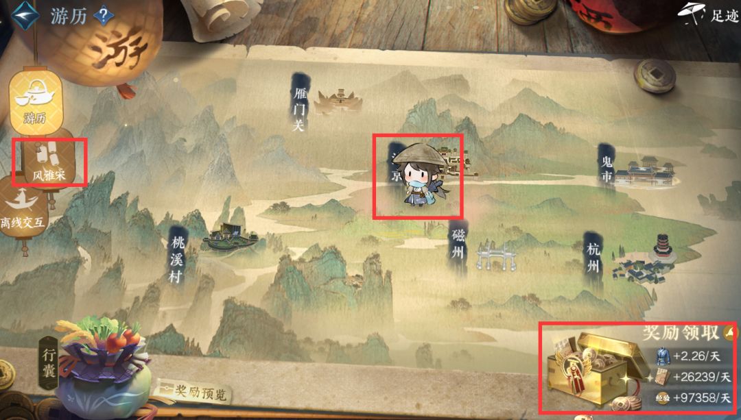 领取离线奖励,清理地图上的事件,补充行囊食物,通关风雅宋最新关卡!