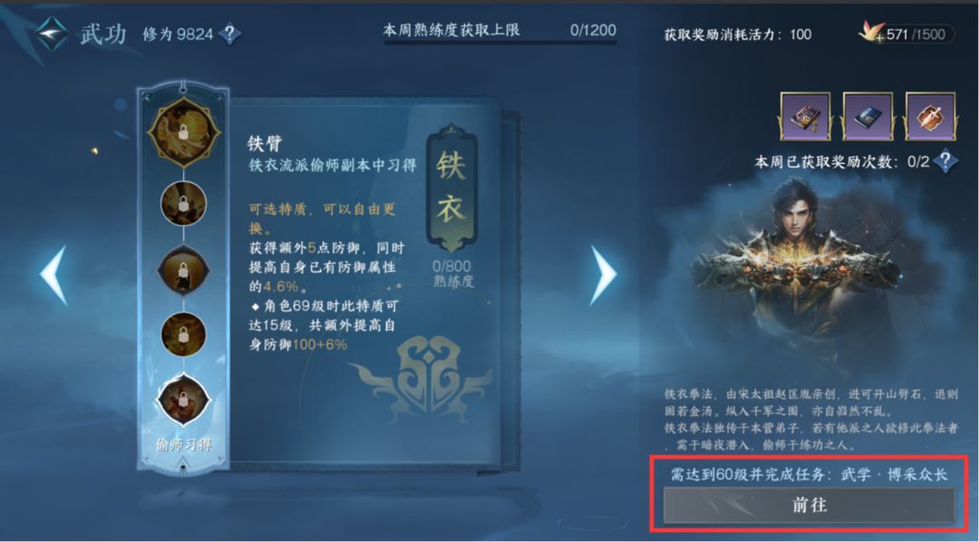 到这一步差不多就60级了,通关剑梦难度二的小伙伴可以学习绝技了,记得领取奖励哦~