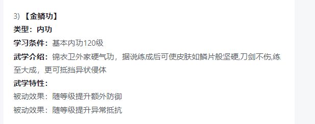 内功加额外防御,和易筋经不一样,加的是固定防御(随等级提升),易筋经加的是百分比防御。
