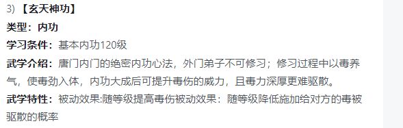内功加毒伤,由于前期打福地过副本主要依赖毒伤输出(丢毒),所以比较建议新区玩家缺输出优先考虑选择玄天神功,例如雪山,少林,血刀等门派前期都比较缺毒伤,小氪玩家可以优先考虑选玄天神功。
