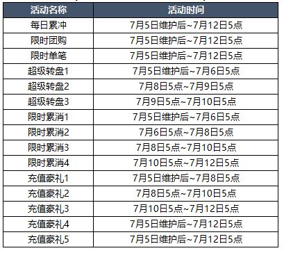 【活动时间】7月5日维护后~7月8日5点