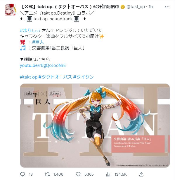 本作现在有日服和台服(国际服),都是同一天发布的。本质的日文全称为“takt op. 運命は真紅き旋律の街を”。