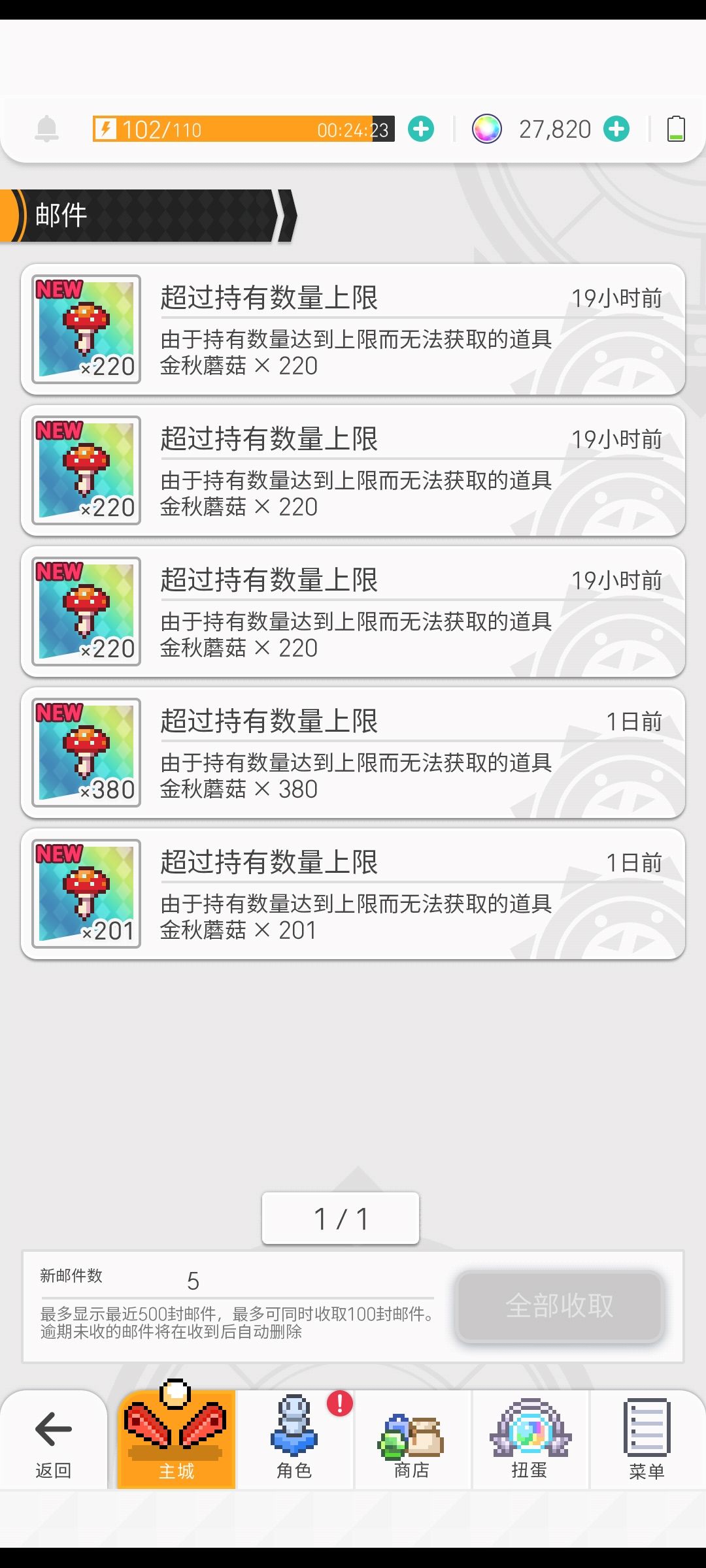 最近无限池刷多了,发现蘑菇溢出,占用邮件位置。这样的话,后面日活、活动等会继续发蘑菇,邮件一直被占用,月卡等奖励该怎么办?不会被卡没了吧