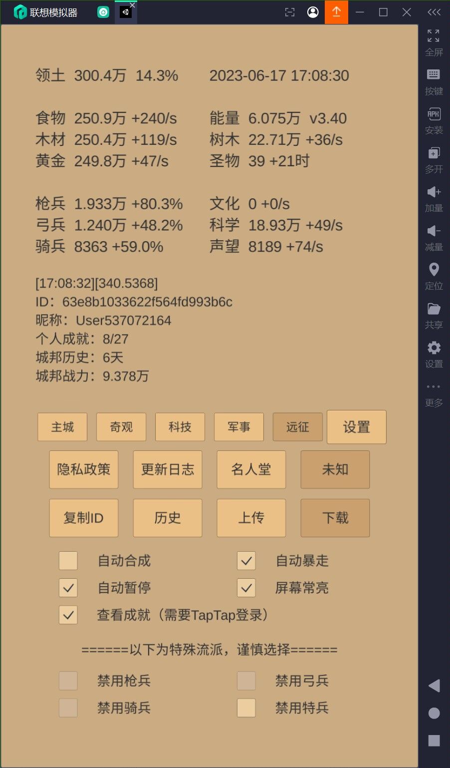 科技流程:白学1级→教育1级→白学14级→建筑6级→指挥3级→军训3级→军阶3级→列阵、抛射、冲锋各1级→推图至290层左右(胜率不低于70bp)→计算你的探索是否可以直接到300万领土,如果可以,便开启探索。