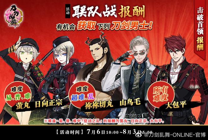 1.御岁魂数量奖励(难度越高,胜利等级越高御岁魂获取量越多)包含新刀剑男士人间无骨,稀有刀南泉一文字、大般若长光以及一堆资源小判和极化道具