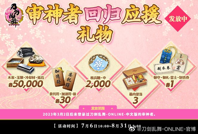 2.刀剑乱舞每年有一个兑换所可以免费换一把上线一段时间以上的刀剑包括稀有活动刀,但是一定不包含新刀