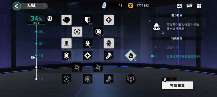 天赋特质选择:自身造成恢复量提高百分之5
