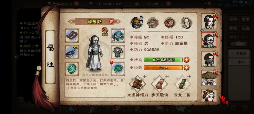 玩烟雨江湖大概有两年了,除了老商,其他都是平民的,没怎么充钱,全靠肝。