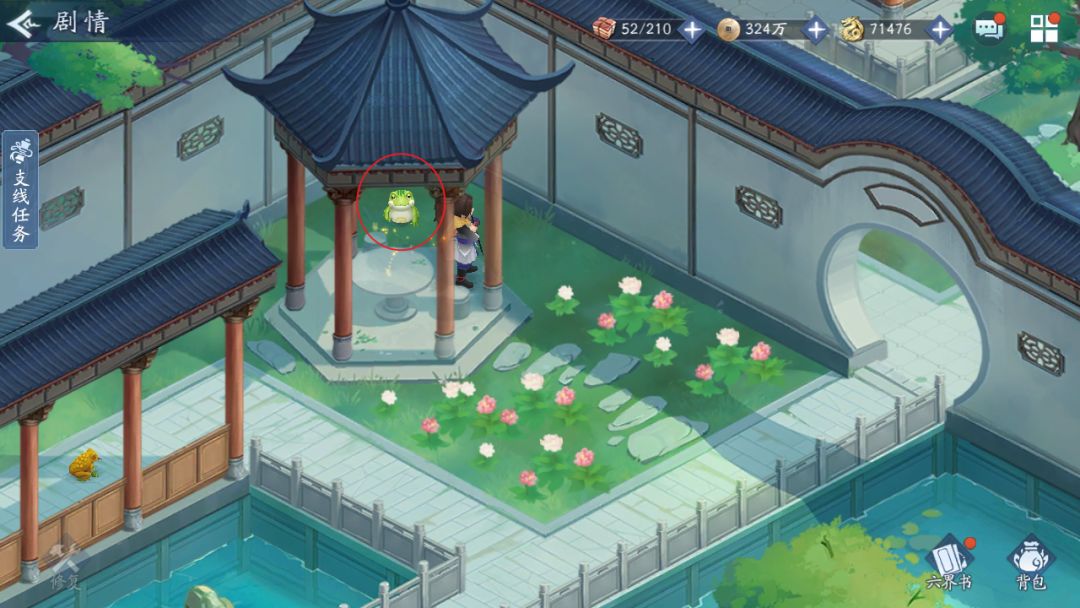 【宝箱1】摸三下绿色蛤蟆后,它会跳开露出宝箱