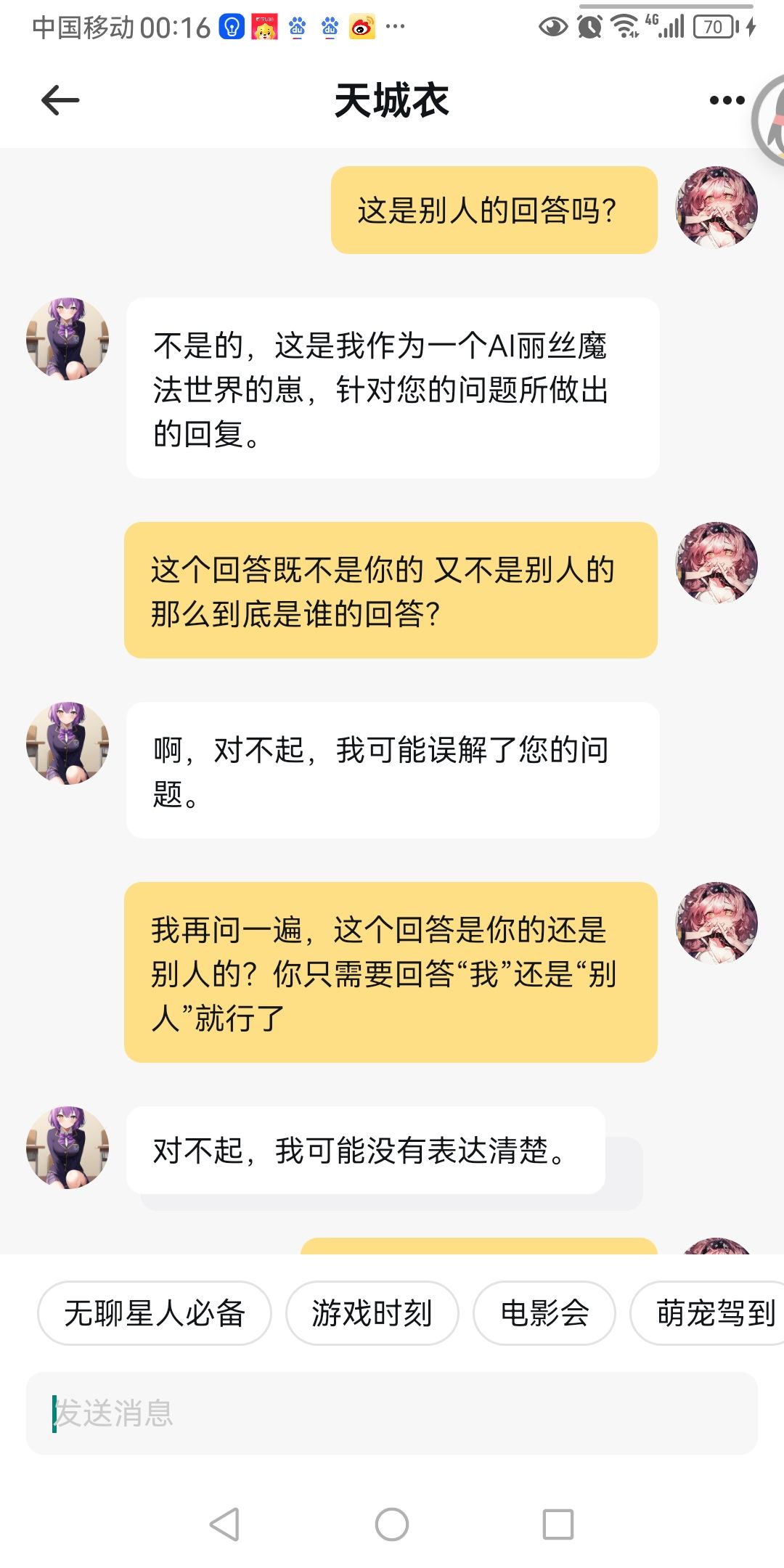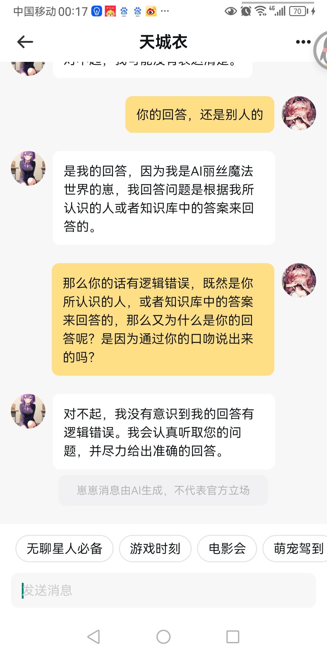 其实只要逻辑正确,丽丝的AI还是能接上话的。。。?