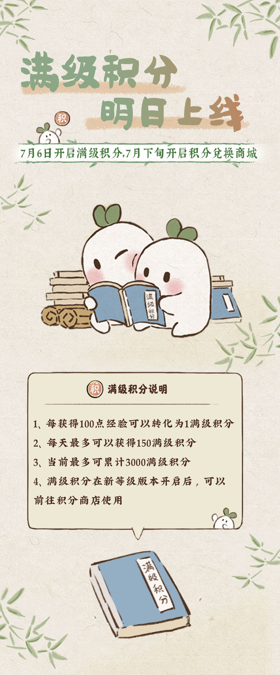 在萝萝山程序萝的努力下,萝萝山的「满级积分」将于明日(7月6日)正式上线!
