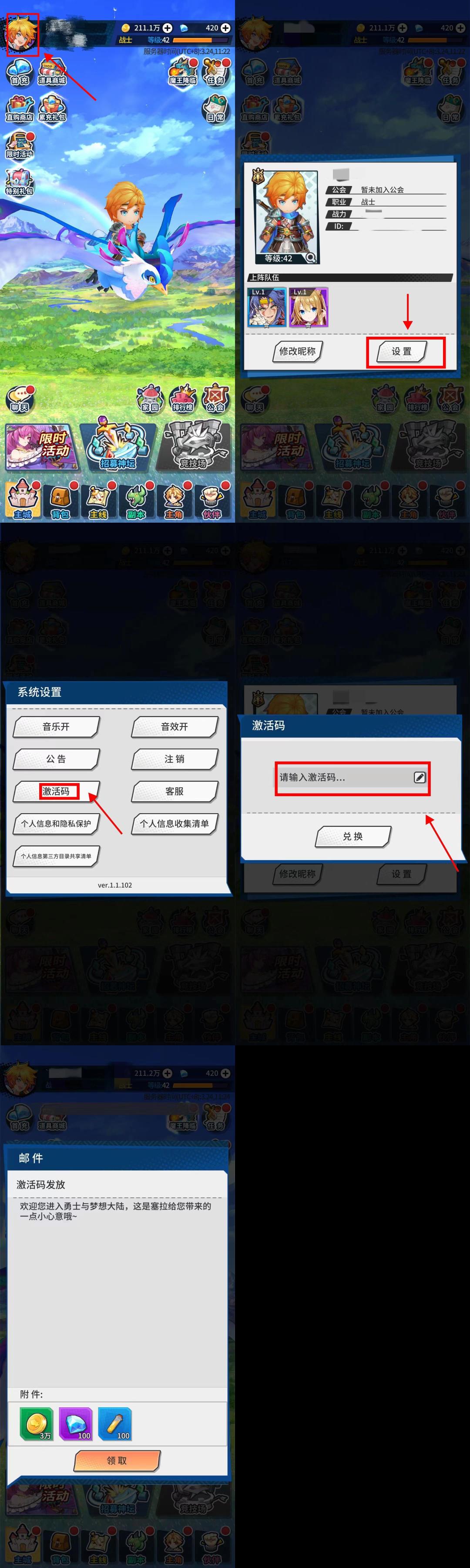 按照下面的小步骤输入礼包码,即可在邮箱内领取激活码内的福利奖励哦!