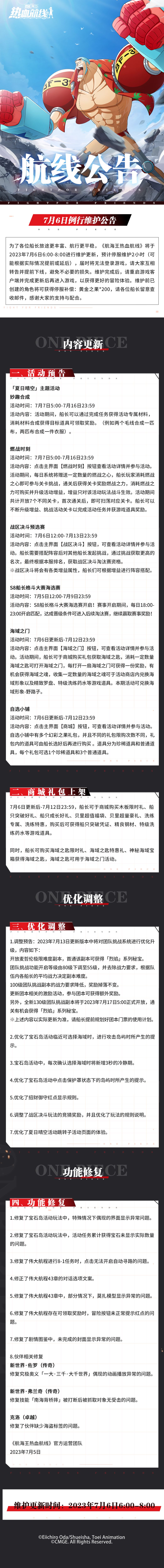 航海王热血航线7月6日例行维护公告